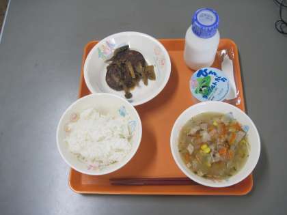 10月22日 本日の給食 公開日 2013/10/22 更新日 2013/10/22 本日のひとこま 今日の給食は、ごはん、牛乳、コーンスープ、ハンバーグのきのこソース、ヨーグルトでした。ハンバーグは、とてもおいしかったです。