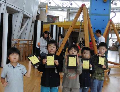 心配された雨も降らず、1年生は元気に児童総合センターに行ってきました。バスに乗ってクイズをしながら、到着しました。センターの方にお話を聞いて、さあ!遊ぶぞ!チャレンジタワーでは、匂いの壁やふわふわの床を見つけたり、ハンティングワードで文字探しをしたり、粘土で「ぽぽぽ」や「ゆらゆら」を作ったり、体も頭も使って、たくさんの体験をしました。