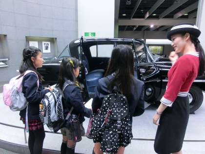 博物館の中をグループで見学しました。しおりにある先生からの問題の答えを一生けんめい探しました。昔の車や、外国の車、最先端の車などかっこいい自動車がいっぱいでした。見学メモにもしっかりとまとめることができました。