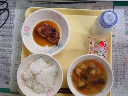 10月28日 本日の給食 公開日 2013/10/28 更新日 2013/10/28 本日の給食 今日のメニューは、ご飯、牛乳、澄まし汁、照り鳥、リンゴのタルトでした。照り鳥は子どもたちの人気メニュー。おいしくいただきました。