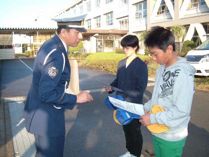 児童会会長と副会長が、パトカーに乗って、交通安全の呼びかけをしました。朝7時30分から本校の校区内を中心にまわりました。交通事故ゼロをめざしていきます。