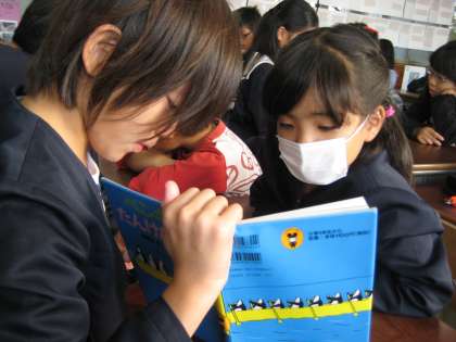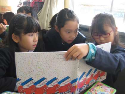 5年生の子は、3年生の子が聞きやすいように、しゃがんであげたり、ゆっくり読んであげたりと上級生としてしっかりと接することができました。