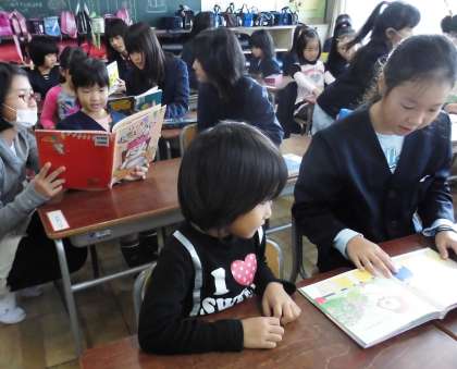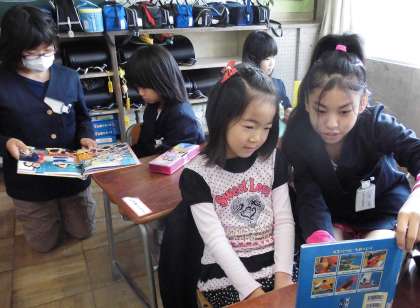 今日は、ペア読書の日でした。6年生のお兄さん、お姉さんが、1年生のために本を読んでくれました。「おもしろい本だったよ。」「お姉さんは読むのが上手だったよ。」「また、読んでほしいなあ。」
