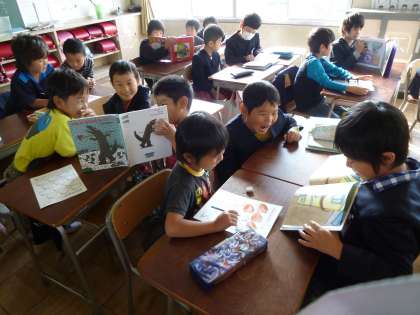 コスモス読書週間の取り組みの一つとして、ペア読書を行いました。2年生の子へ一生懸命読み聞かせをしました。2年生の子の笑顔を見ることができました。