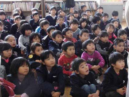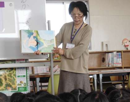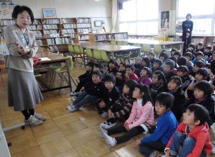 図書館の司書の先生に、「むかしばなし」についてブックトークをしてもらいました。「わやしべちょうじゃ」のお話では、わらが何にかわっていったかクイズをしたり、「まのいいりょうし」の本を読んでもらったり、むかしばなしの置いてある棚を教えてもらったりしました。「むかしばなしっておもしろいねえ。今度、借りに来よう。」