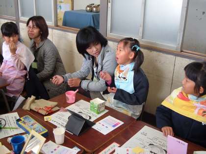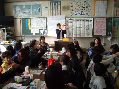 1年2組親子歯磨き教室の様子です。むし歯セロをめざしていきます。
