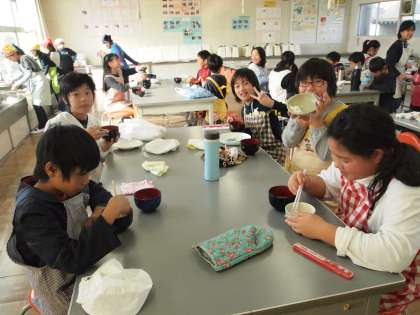 ご飯とみそ汁の調理実習をしました。家で聞いてきたご飯を炊くコツなどを生かし、実習ができました。