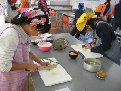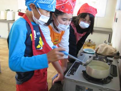 班の子と協力して調理を行ったり、ご飯の炊ける様子や、みその煮える様子を興味を持って観察したりと楽しんで取り組むことができました。