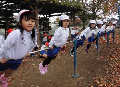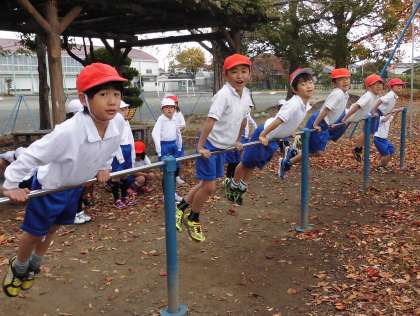体育の時間に鉄棒遊びをしました。おさるさんになって鉄棒にぶらさがったり、布団干しをしたりしました。つばめになって、ピッとポーズを決めました。みんなかっこいい!