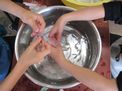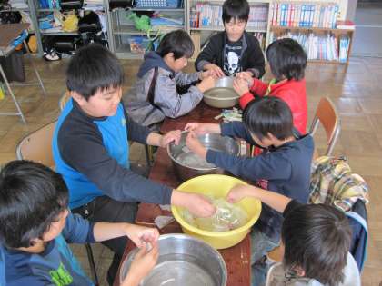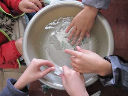 先週は牛乳パックの糊が付いている部分を切り取り、
