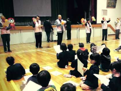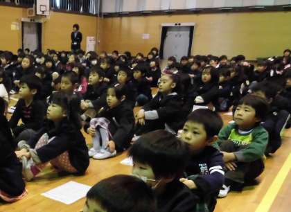 人権集会がありました。人権擁護委員の方にお話を聞いたり、「勇気のお守り」のアニメーションを見せてもらったり、「世界をしあわせに」の歌を歌ったりしました。人権という言葉はむずかしいですが、1年生の子も「自分がいやなことはしないようにしよう。」「友達は大切。」ということがわかりました。色紙とクリアファイルをいただきました。大切に使って、今日のことを思い出すようにしたいですね。