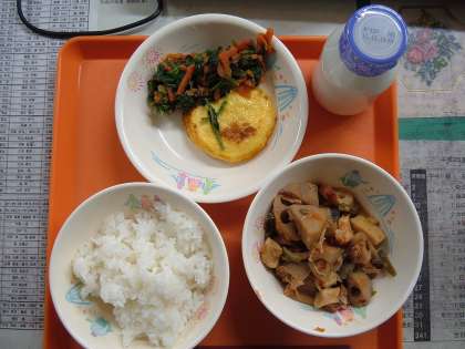 12月2日 本日の給食 公開日 2013/12/02 更新日 2013/12/02 本日の給食 今日のメニューは、ご飯、牛乳、うま煮、コーンたまごやき、ホウレンソウのおかかあえでした。ホウレンソウは味がしみ込んでいておいしかったです。