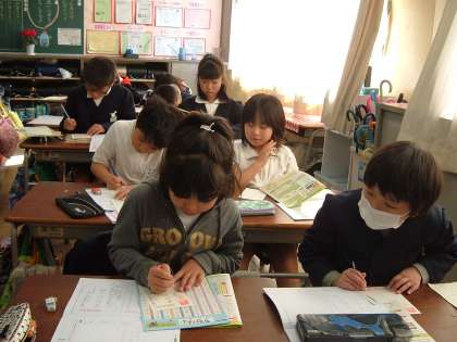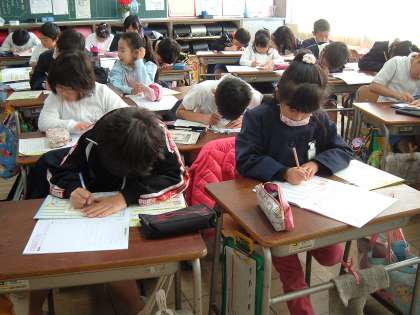 今日、3年生は書写の時間に、年賀状のかき方の学習をしました。どの子もいつもより丁寧に書いていました。