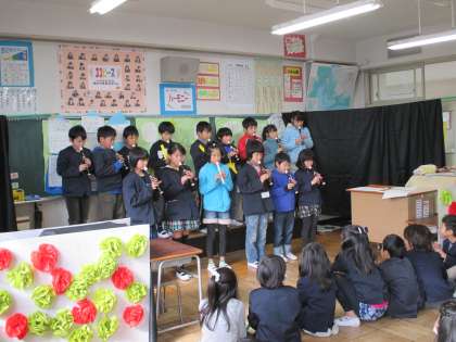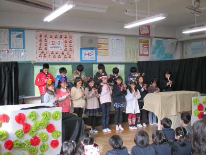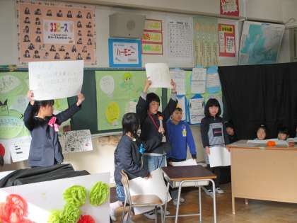風邪にも負けず、全員元気に集合!!ちょっぴりハプニングもありましたが、グループごとに助け合い、学習発表会を行うことができました。総合学習を通して、学んできたことを多くの人々に伝える機会をもつことができました。子どもたち自身も、地球に優しい生活を心がける意識を高めることができました。ご参観ありがとうございました。