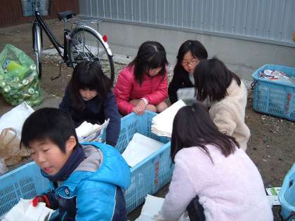 今日は、PTA担当の資源回収日でした。早朝からPTAの役員委員の方にお手伝いいただきました。ありがとうございました。4年生も環境学習の一環で、お手伝いをしました。