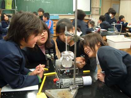 今日は、水をあたためる実験をしました。はじめは順調よく温度が上がっていきました。しかし、途中から温度の上がりがにぶくなり、ある温度から上がらなくなりました。「なぜだ?」「なぜだ?」と子どもたちは首をかしげていました。明日の理科で今日のまとめをします。どんな考えが出るか楽しみです。