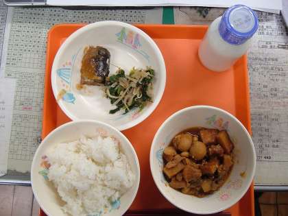 1月30日 本日の給食 公開日 2014/01/30 更新日 2014/01/30 本日の給食 今日のメニューは、ご飯、牛乳、煮味噌、さんまのみぞれ煮、ホウレンソウのおかか和えでした。煮味噌は味がしみ込んでいておいしかったです。