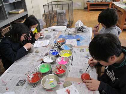 今日は、冬休みに集めてきたお気に入りの石を使った石ころアートを川口先生に教えていただきました。石についての話にも、子どもたちは興味をもって真剣に聞き、学びました。