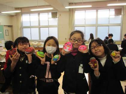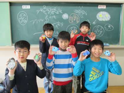 石が子どもたちの手ですてきな作品に仕上がりました。できあがった作品を大切にしていこうという気持ちになっていました。