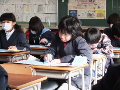 図工の授業で版画の製作をしています。テーマは6年生の思い出。やはり修学旅行や運動会をテーマに選ぶ子が多いです。今は多くの子が、彫りに入っており、みんな真剣に取り組んでいます。