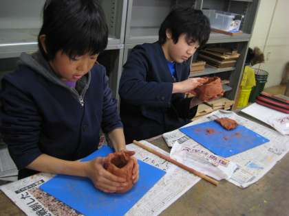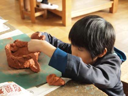 彫塑ねんどを使って、使う目的を考えて作品を制作しました。「やわらかい!」「気持ちいい!」とねんどの感触を楽しみながら取り組んでいました。