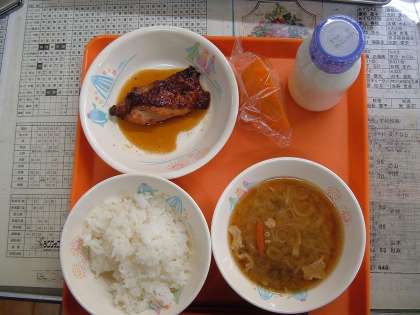 今日のメニューは、ご飯、牛乳、道産子汁、照り鳥、いよかんでした。照り鳥は、子ども達の人気ミュー。おいしくいただきました。