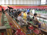 Jアラートがなった場合を想定した避難訓練を行いました。外にいる人は、建物の中に逃げたり、教室などにいる人は机の下などに隠れました。