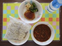 今日の献立は、麦ごはん、牛乳、だいこんのそぼろ煮、厚焼き卵、じゃこピーマンでした。