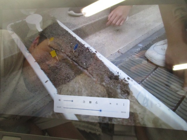 理科では、流れる水の働きについて学習しています。今日は、流れる水にはどんな働きがあるのかを実際にプランターの受け皿に土をしいて、水を流す実験をしました。その後、教室でChromebookでとった動画を確認しました。
