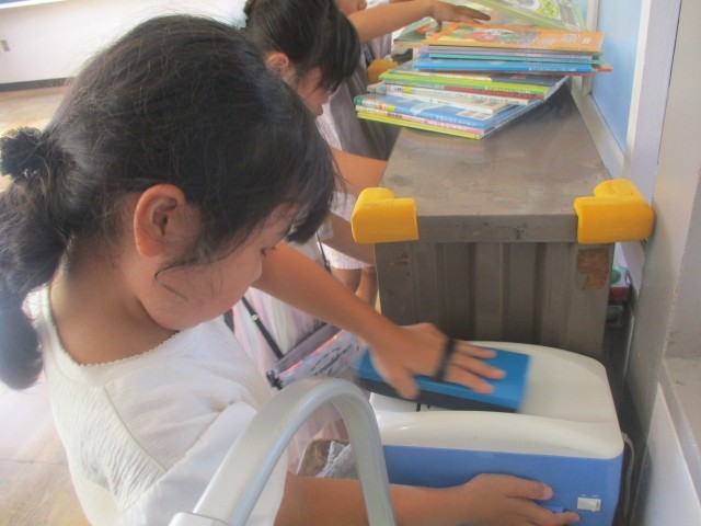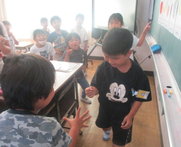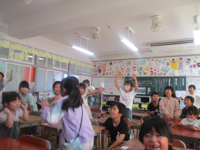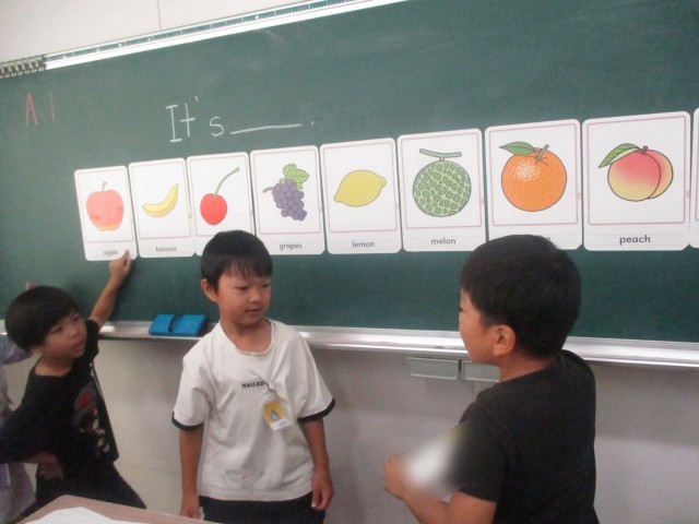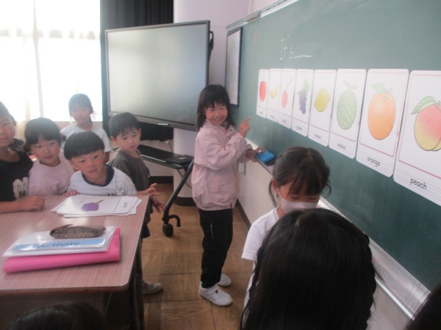 今日は、英語の授業がありました。子どもたちは「やった!!ひさしぶりだ!」と、楽しみにしていました。みんなで楽しく練習し、ゲームをしました。「がんばれ!」とあたたかい声掛けも聞こえ、全員が果物のゲームをすることが出来ました。また、全校で黙動キャンペーンも始まり、掃除も静かに取り組んでいました。