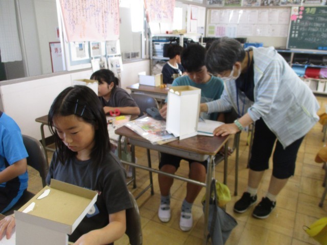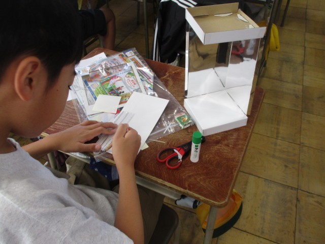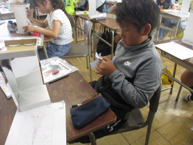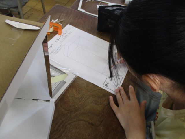 下描きを描いた後、作品づくりに入りました。鏡を利用した作品にするために、試行錯誤していました。
