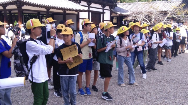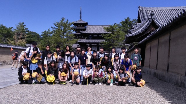ガイドさんの説明を聞きながら、世界最古の木造建築を見学しました。