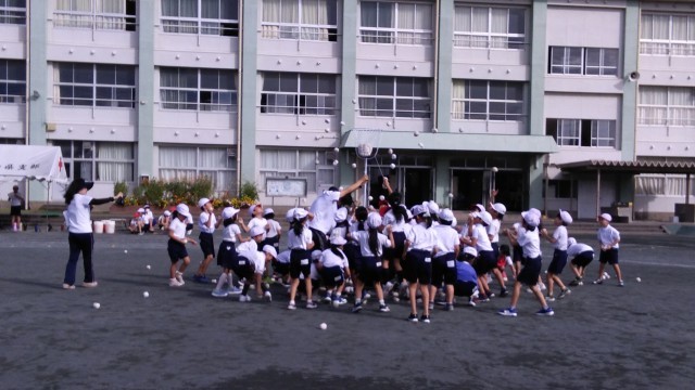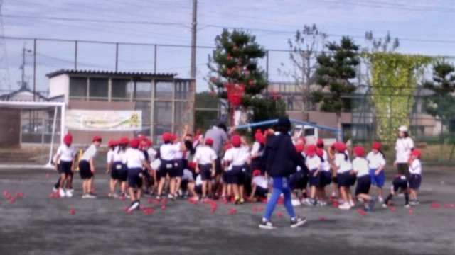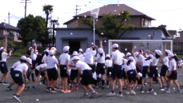 運動会まで2週間になりました。今日は全校で行う 玉入れの練習を行いました。昨年度と違う入場の仕方やルールの確認を行いました。