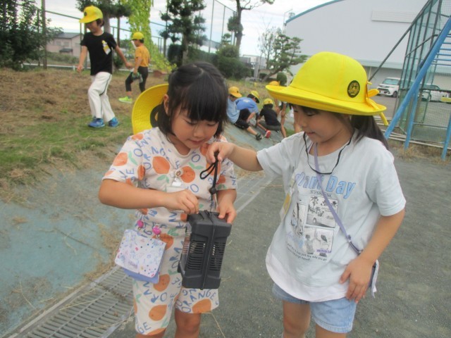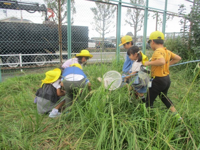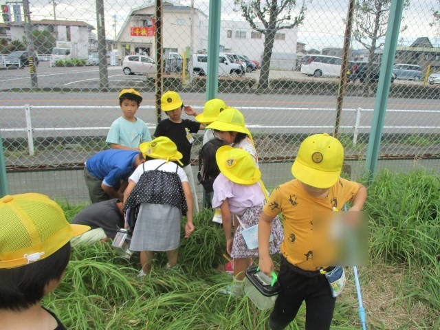 国語の授業で、おうちの人に知らせたいことを、絵と文章で書く学習が始まりました。生活科でも生き物を捕まえて観察しているので、みんなで協力して捕まえることにしました。「音がするよ!」「葉っぱも一緒に入れておこう!」と、生き物のことを考えながら、探していました。明日は、文章に書いてみましょう。