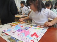 読書感想画の授業が始まりました。「てぶくろ」のお話を読んで、思い浮かべたことを絵にあらわしています。今日は、それぞれの動物たちの配置を決めたり、動物の輪郭を描いたりしていました。「こんなのもいいよね」「もっと大きく描いたほうがいいかな」と、一生懸命描いていました。