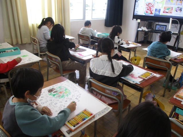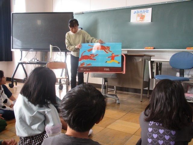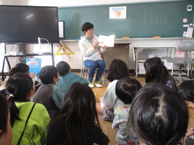 読書の秋です。今日は「さくらママ」の方に読み聞かせをしていただきました。「よかったねネッドくん」と「こんにちはといってごらん」のお話では、絵本の世界に入り込んでいく子供たちの姿が見られました。図工でも物語の絵を描いています。どんどん本と仲良しになっていきます。