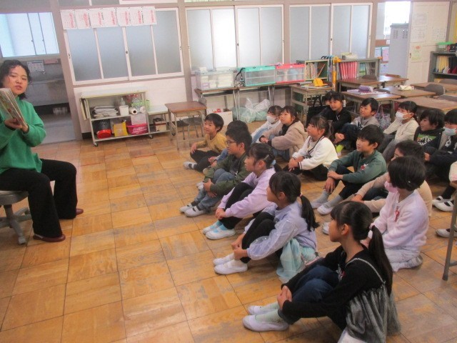 今朝は、「さくらママ」による読み聞かせがありました。「ギリギリかめん」という絵本を読んでいただきました。心温まる読み聞かせに、みんなじっと聞き入っていました。
