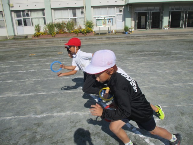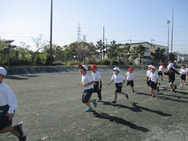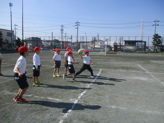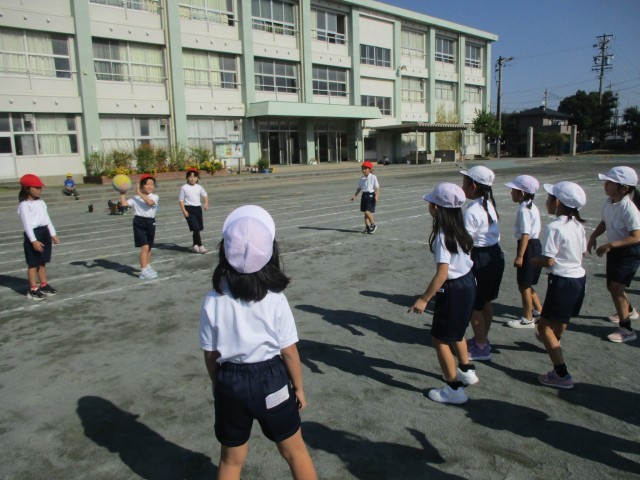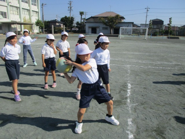 体育の授業で、リレー遊びをしたりドッジボールをしたりしました。チームで協力しながら、楽しく活動していました。
