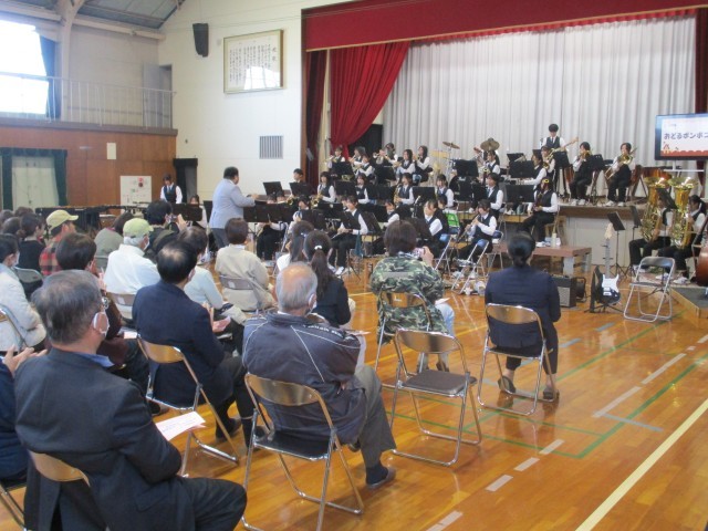 今年度は、近くの愛知県立一宮南高等学校の吹奏楽部の皆さんに来ていただき、とても迫力のある演奏を聴かせてもらいました。
