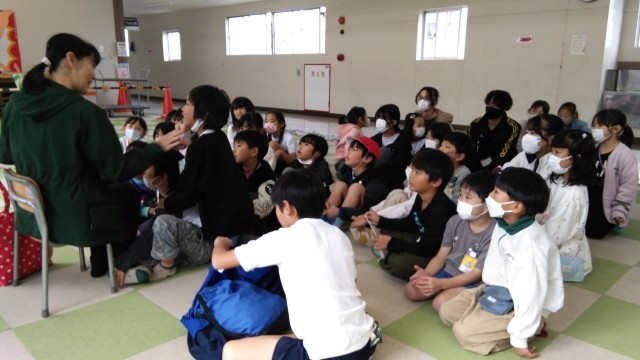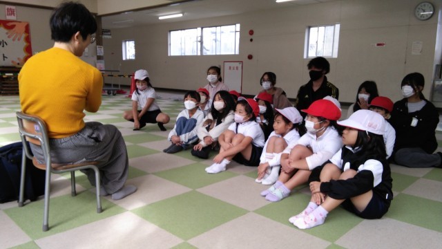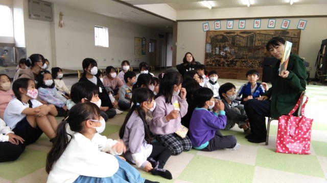 12日の読み聞かせに引き続いて、今週も ボランティアの方が来てくださいました。休み時間に せんなん広場で絵本を紹介してくださいました。 ありがとうございました。