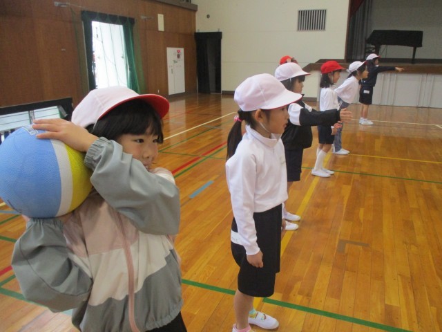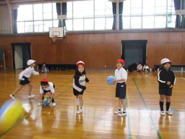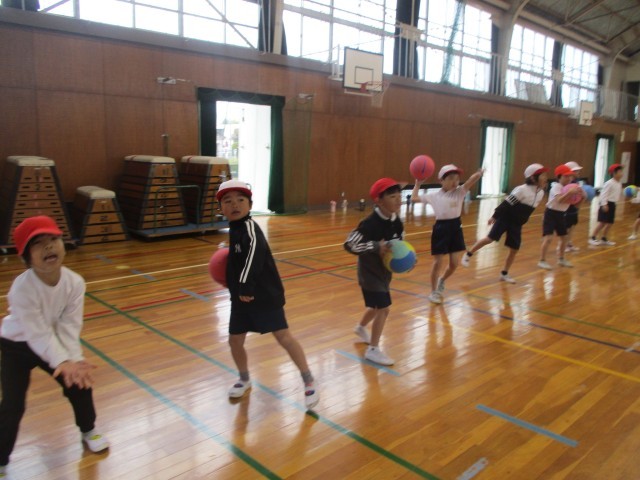 1時間目に「せんなんのわ」がありました。全校で集まって、話を聞いてから、写真撮影をしました。また、体育の授業では、ボール遊びをし、最後はドッジボールをして、思いっきり身体を動かしていました。