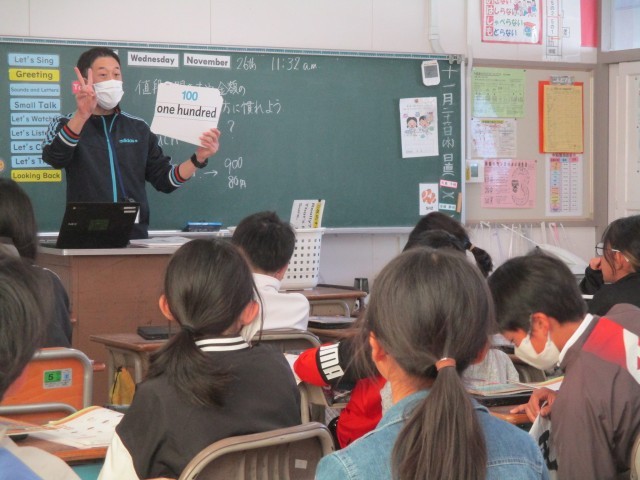 英語の学習で「値段の聞き方や金額の言い方に慣れよう」というめあてのもと、先生や友達と何度も言い合いながら単語や英文を覚え、覚えたての会話文でやり取りをしていました。元気よく発音できていましたね。