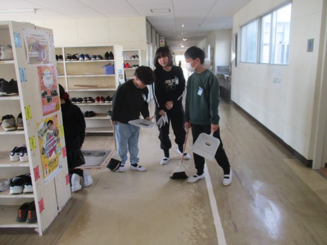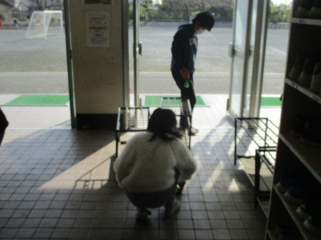 掃除の時間には、みんなで協力して、時間いっぱい、掃除しています。時間があるときには、普段掃除しないところも掃除をして、すみずみまできれいにしています。