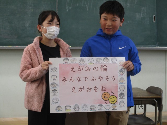人権について各学級で考え、これからみんなで守っていくことを分かりやすくスローガンにまとめました。オンラインの朝礼で代表者が発表しました。
