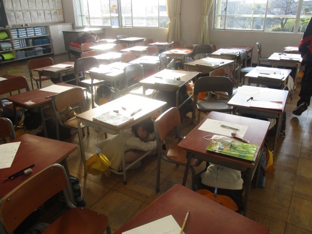 12月2日(火)避難訓練(シェイクアウト)1年生