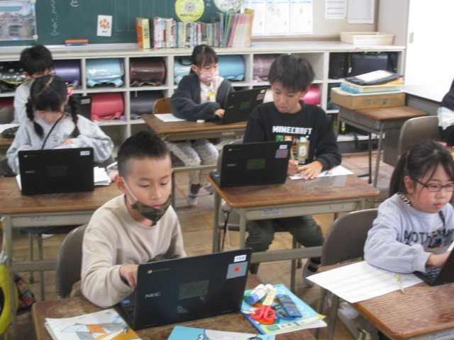 社会科の学習で古くから伝わる祭りについて学習しました。祭りの特徴や込められた願いなど、副読本やクロームブックを使って、調べました。