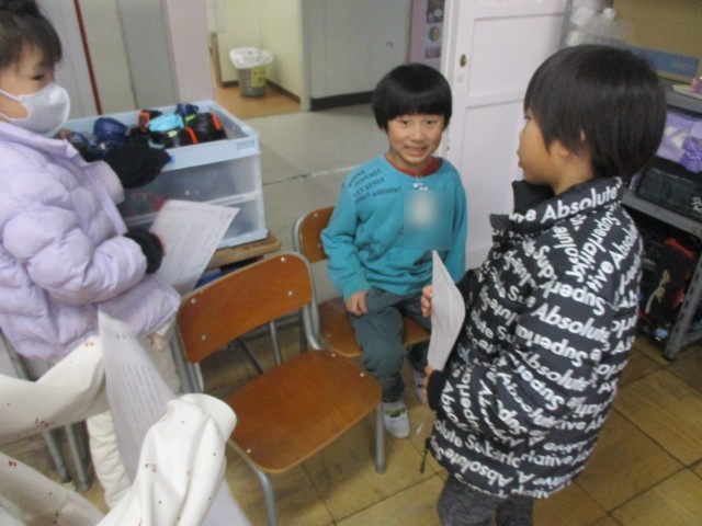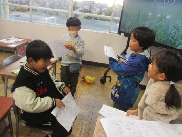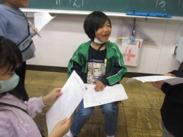 千南フェスタに向けて、セリフを考えたり動きをつけたりしています。自分たちで考えるので、話し合いながらみんなで協力しています。また、本日はペア遊びで6年生と「いろいろぼうや」をしました。一緒に走ったり、色を探してタッチしたりと、楽しい時間を過ごしました。
