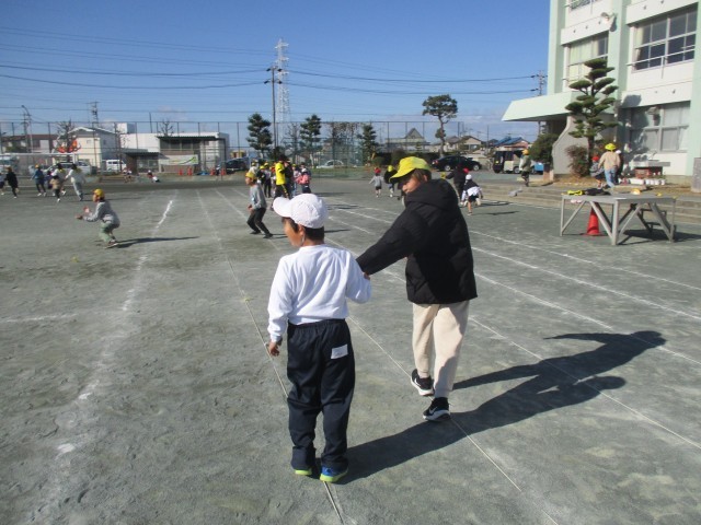 本日の大放課、6年2組と1年1組のペア遊びがありました。鬼役の子が発表した色を聞き、その色がある遊具などを探してタッチする「いろいろぼうや」を行いました。ペアの子と手をつなぎ、一生懸命になって色を探す姿が楽しそうでした。