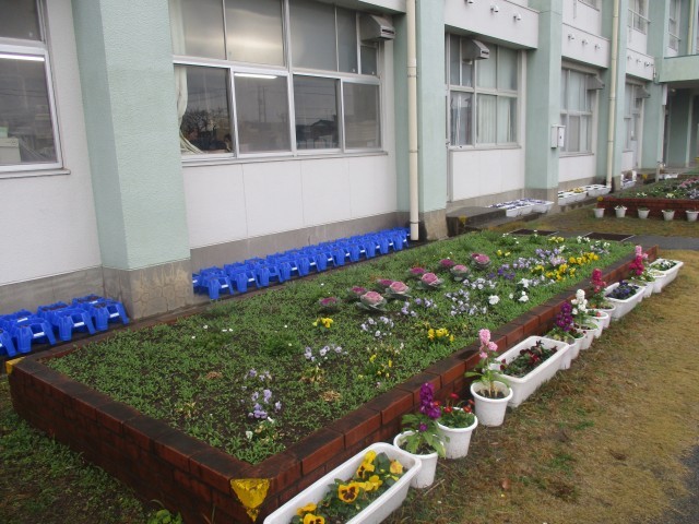 冬休み初日。いかがお過ごしですか。今日はあいにくの雨です。外に出られなくて残念に思っている方もいらっしゃるでしょうが、学校の花壇の花は水を得て生き生きとしています。皆さんが元気に冬休みを過ごしてくださるように応援しているようです。楽しい日をすごしてくださいね!
