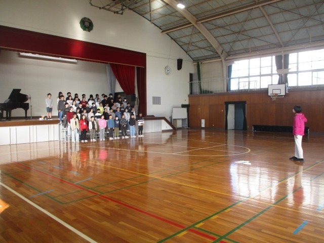 1月24日の千南フェスタに向けて、初めて屋運で合唱の練習を行いました。音楽室や教室よりも広い場所で、合唱台を使って歌うということで、いつもと違うことに緊張している子もいましたが、しっかりと口を開けて歌声を響かせることができました。